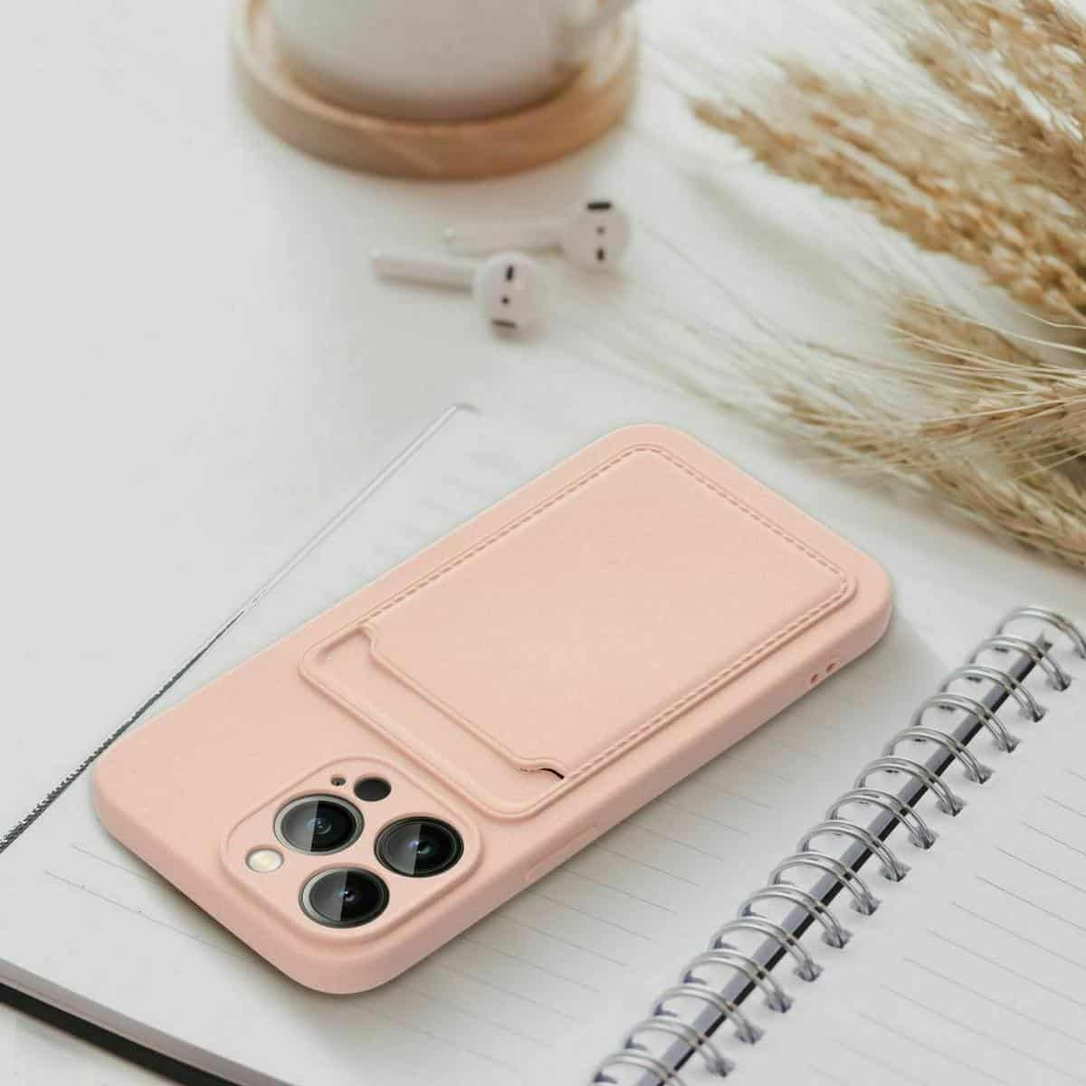 Θήκη για IPhone 13 Pro Max με τσέπη Ροζ για προστασία του πίσω μέρους του κινητού σας από γρατζουνιές κι άλλες φθορές. Η κατασκευή της από σιλικόνη την κάνει εύκαμπτη, επιτρέποντας τη συχνή τοποθέτηση κι αφαίρεση της, σε αντίθεση με μια πλαστική που μπορεί να φθαρεί. Έχει υποδοχές για αποθήκευση καρτών, επιτρέποντας σου να βγαίνεις από το σπίτι χωρίς πορτοφόλι.