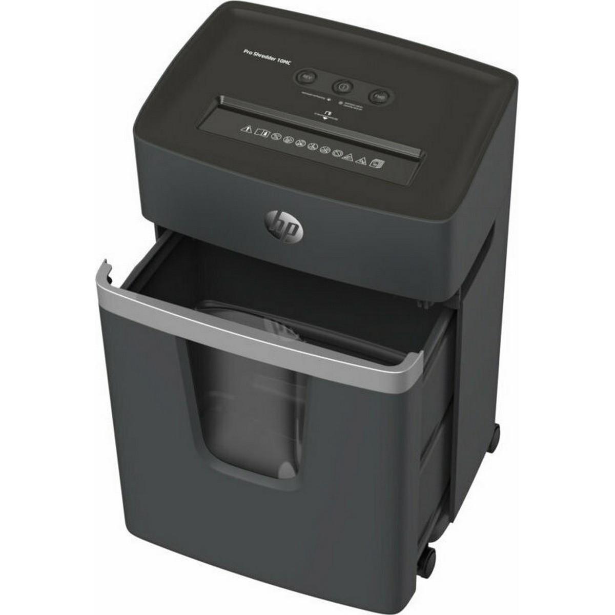 Ο συμπαγής τεμαχιστής HP Pro Shredder 10MC έχει χωρητικότητα κοπής 10 φύλλων. Προσφέρει μικροκοπή σε κομμάτια 2 mm x 15 mm, πληρώντας τις υψηλές απαιτήσεις ασφαλείας του P-5 και διασφαλίζει την καταστροφή σύμφωνα με τον Γενικό Κανονισμό Προστασίας Δεδομένων. Ο τεμαχιστής αυτός λειτουργεί με ήσυχο θόρυβο 55 ντεσιμπέλ και προσφέρει τη δυνατότητα κοπής έως 20 λεπτά συνεχούς λειτουργίας. Διαθέτει ανασυρόμενο δοχείο συλλογής 20 λίτρων με εύκολο έλεγχο του επιπέδου πλήρωσης μέσω μεγάλου παραθύρου προβολής. Περιλαμβάνει αυτόματη αντιστροφή και λειτουργία αυτόματης εκκίνησης-διακοπής, διασφαλίζοντας ότι η συσκευή σταματά μόλις δεν τροφοδοτείται υλικό. Είναι ικανός να καταστρέφει πιστωτικές κάρτες, συνδετήρες και άλλες σταθερές δομές χωρίς την ανάγκη προεργασίας. Σε περίπτωση τοποθέτησης περισσότερων από 10 φύλλων ταυτόχρονα, ο τεμαχιστής σταματά και τροφοδοτεί το χαρτί πίσω για να αποφεύγονται οι εμπλοκές. Συνιστάται να καθαρίζεται τακτικά η μονάδα κοπής για βέλτιστα αποτελέσματα και παρατεταμένη διάρκεια λειτουργίας.